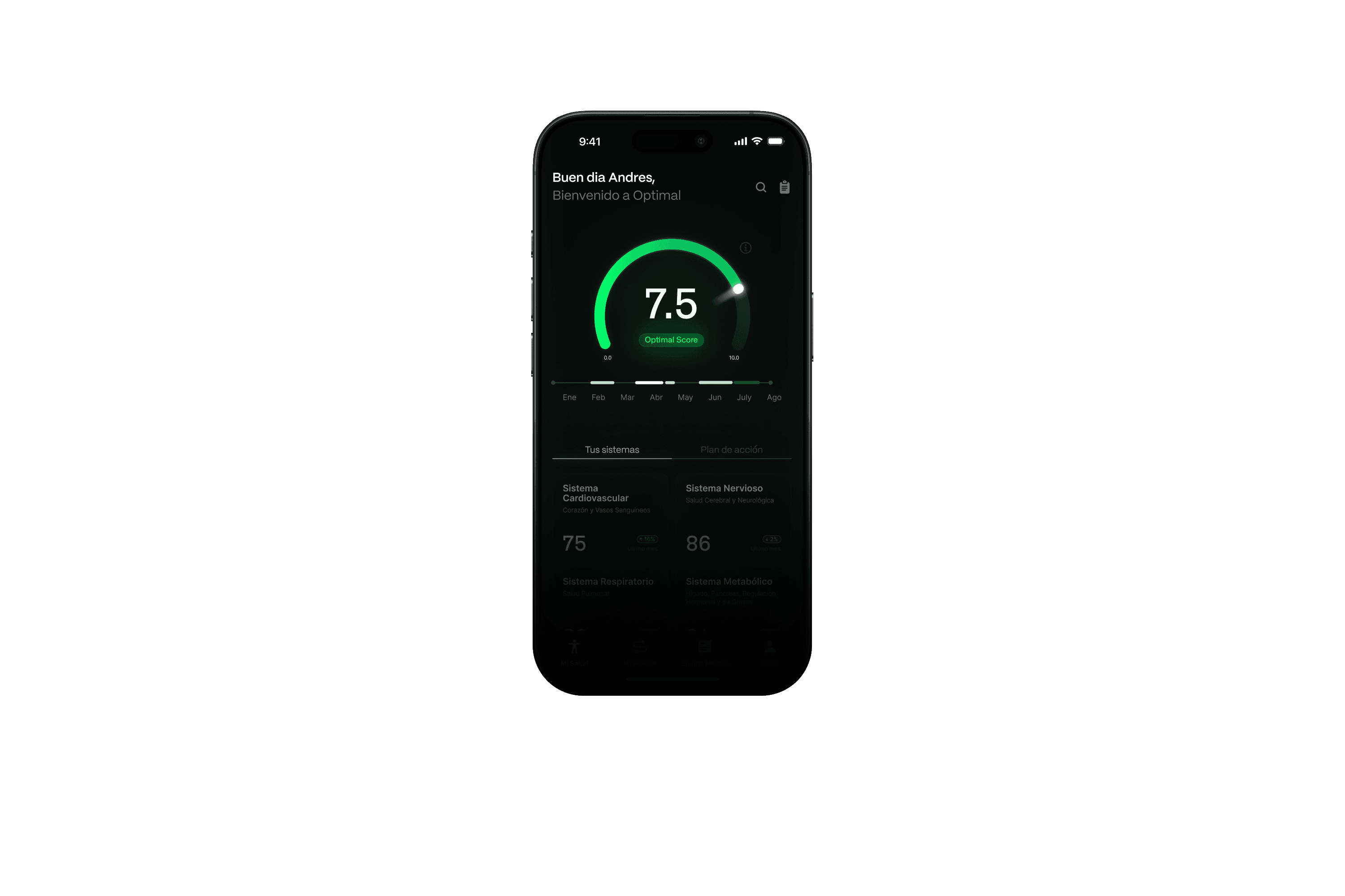 A través de HealthOS, convertimos tus análisis en planes personalizados, métricas diarias y acompañamiento médico continuo.